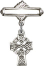 Celtic Cross Charm and Polished Engravable Badge Pin - Sterling Silver / 1" x 5/8" is backordered and will ship as soon as it is back in stock.