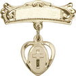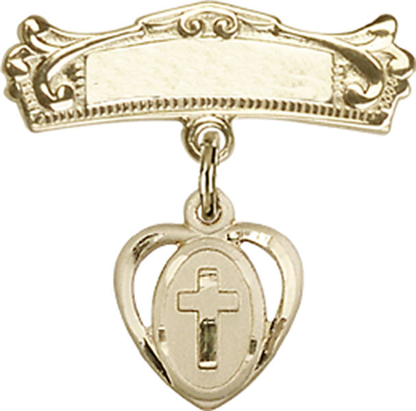 Cross Charm and Arched Polished Engravable Badge Pin - 14K Solid Gold / 3/4" x 3/4" is backordered and will ship as soon as it is back in stock.