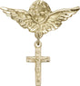Crucifix Charm and Angel with Larger Wings Badge Pin - 14K Solid Gold / 1 1/4" x 1 1/8" is backordered and will ship as soon as it is back in stock.