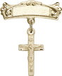 Crucifix Charm and Arched Polished Engravable Badge Pin - 14K Solid Gold / 1" x 3/4" is backordered and will ship as soon as it is back in stock.