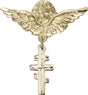 Greek Orthadox Cross Charm and Angel with Larger Wings Badge Pin - 14K Solid Gold / 1 1/4" x 1 1/8" is backordered and will ship as soon as it is back in stock.