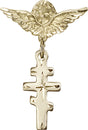Greek Orthadox Cross Charm and Angel with Smaller Wings Badge Pin - 14K Solid Gold / 1" x 3/4" is backordered and will ship as soon as it is back in stock.
