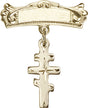 Greek Orthadox Cross Charm and Arched Polished Engravable Badge Pin - 14K Solid Gold / 1" x 3/4" is backordered and will ship as soon as it is back in stock.