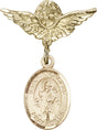 St. Nicholas Charm and Angel with Smaller Wings Badge Pin - 14K Solid Gold / 1" x 3/4" is backordered and will ship as soon as it is back in stock.