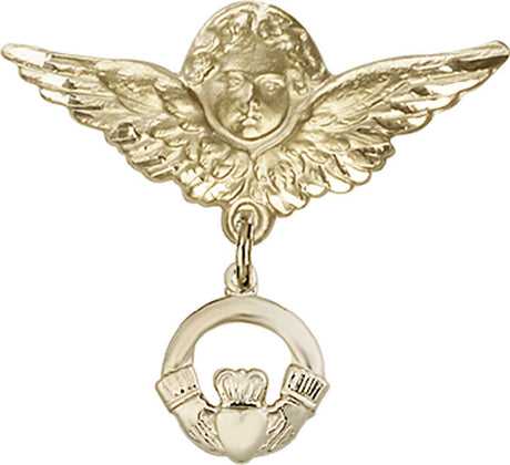 Claddagh Charm and Angel with Larger Wings Badge Pin