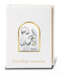 A lovely First Communion Missal keepsake to treasure! This Missal book has a padded leatherette cover and a Salerni medallion on the front. The medallion has an image of a young girl receiving first communion.