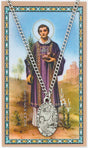 St. Stephen pendant is paired with a plastic laminated St. Stephen prayer card. This medallion shows a wonderful image of St. Stephen holding a stone while a dove soars over head. This St. Stephen pendant has the following features;