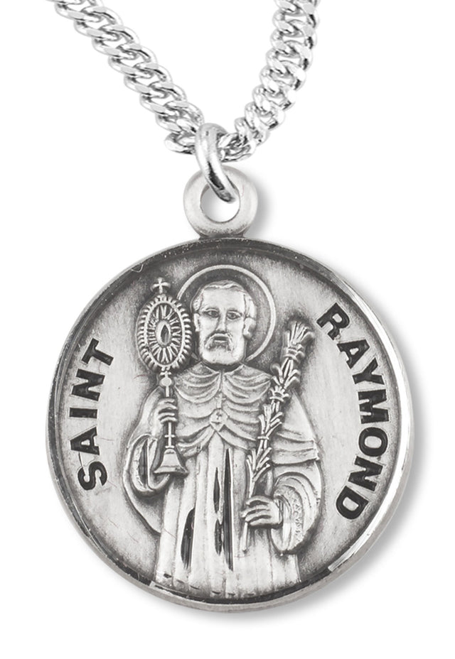 St. Raymond Medal - Sterling Silver / 3/4" Diameter / 18" Surgical Stainless Steel Medium Curb Chain with Clasp is backordered and will ship as soon as it is back in stock.
