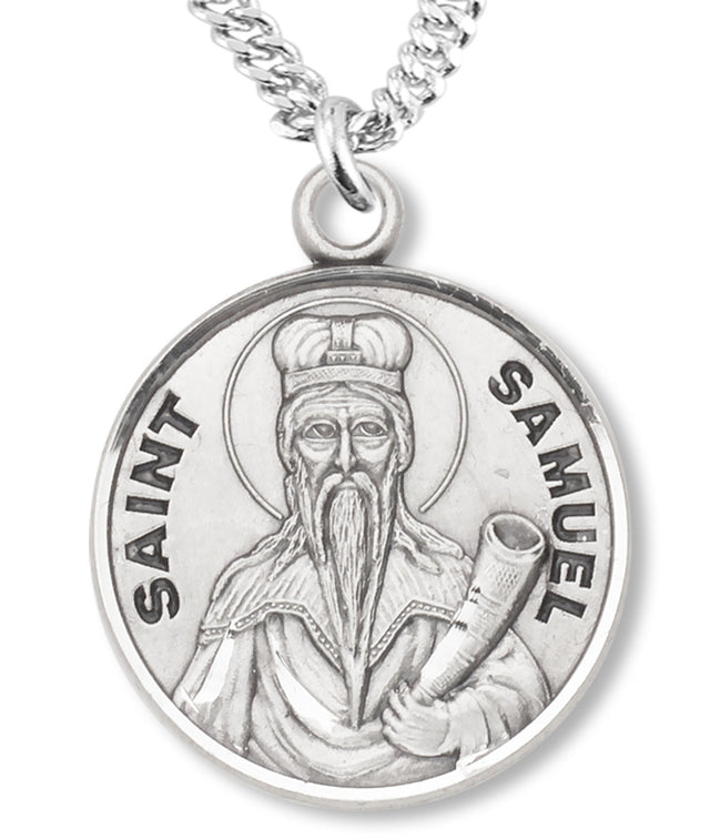 St. Samuel Medal - Sterling Silver / 3/4" Diameter / 18" Surgical Stainless Steel Medium Curb Chain is backordered and will ship as soon as it is back in stock.