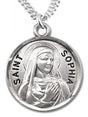 A lovely image of Saint Sophia is found in the middle of this necklace. She has placed her hand across her heart and her head surrounded by a halo. She is the mother of the three daughters Faith, Hope and Charity.