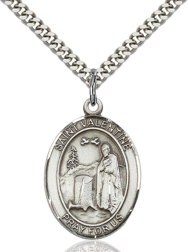 St. Valentine of Rome Medal - Pewter / 3/4" x 1/2" (Dime Size) / 18" Rhodium Plated Medium Curb Chain with Clasp (1.7mm) is backordered and will ship as soon as it is back in stock.