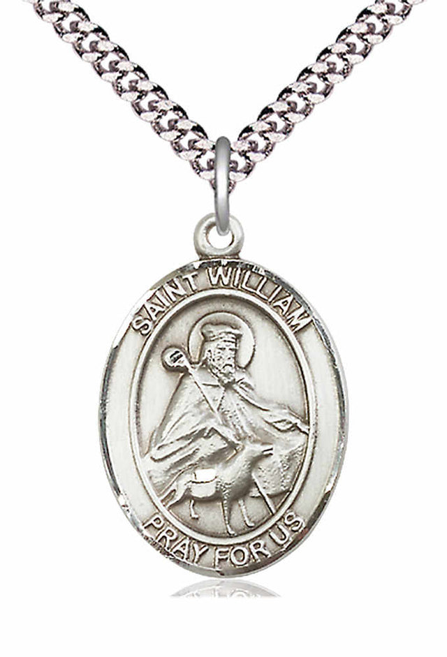 St. William of Rochester Medal - Pewter / 3/4" x 1/2" (Dime Size) / 18" Rhodium Plated Medium Curb Chain with Clasp (1.7mm) is backordered and will ship as soon as it is back in stock.
