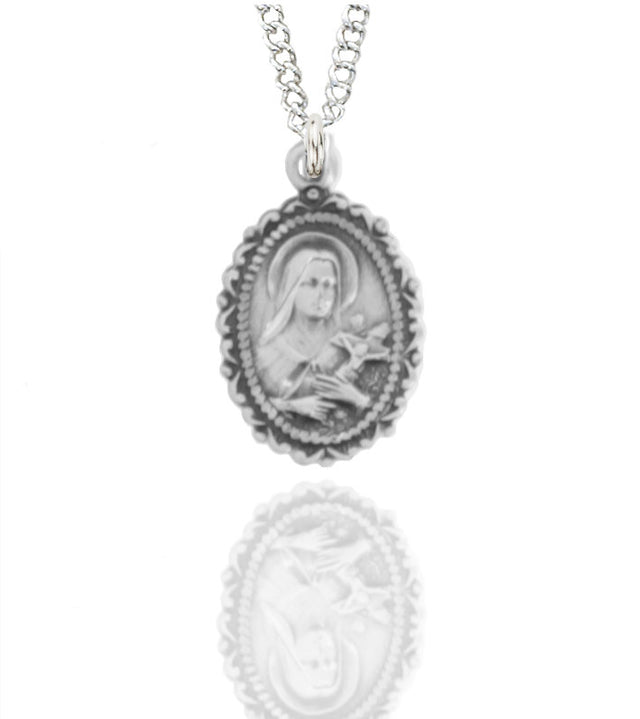 Saint Therese Dainty Sterling Silver Pendant Necklace - Sterling Silver / 3/4" x 1/2" (Dime Size) is backordered and will ship as soon as it is back in stock.