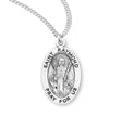 A classic image of Saint Raymond is in the center of the pendant as he holds a monstrance in one hand and a set of palms in the other hand.