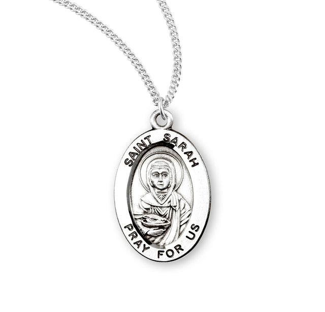 St. Sarah Oval Medal for Women - Sterling Silver / 7/8" x 1/2" is backordered and will ship as soon as it is back in stock.