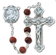 6mm Maroon Carved Wood Bead Rosary in Sterling Silver
