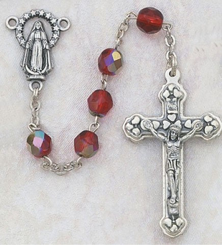 July Birthstone Rosary (Ruby) - Silver Oxidized