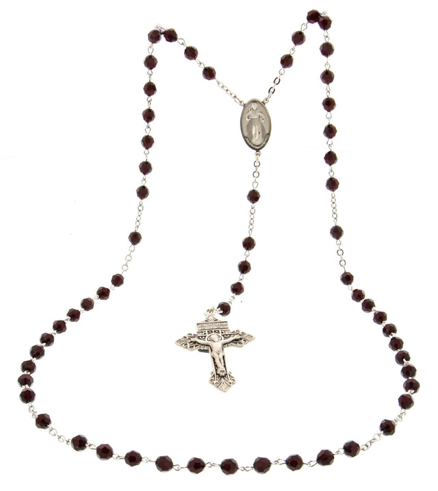 Garnet Swarovski Rosary with Pardon Crucifix - Garnet / 7mm is backordered and will ship as soon as it is back in stock.