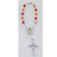This lovely auto rosary is connected by red and gold glass beads, has Sacred Heart center and a silver-plated crucifix.