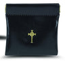 This black vinyl rosary case is just what you need to protect your special rosary! It's made of soft textured vinyl with a squeeze closure. The front of the case has a gold stamped design featuring a cross with the unity circle through it. Made to fit any standard rosary.