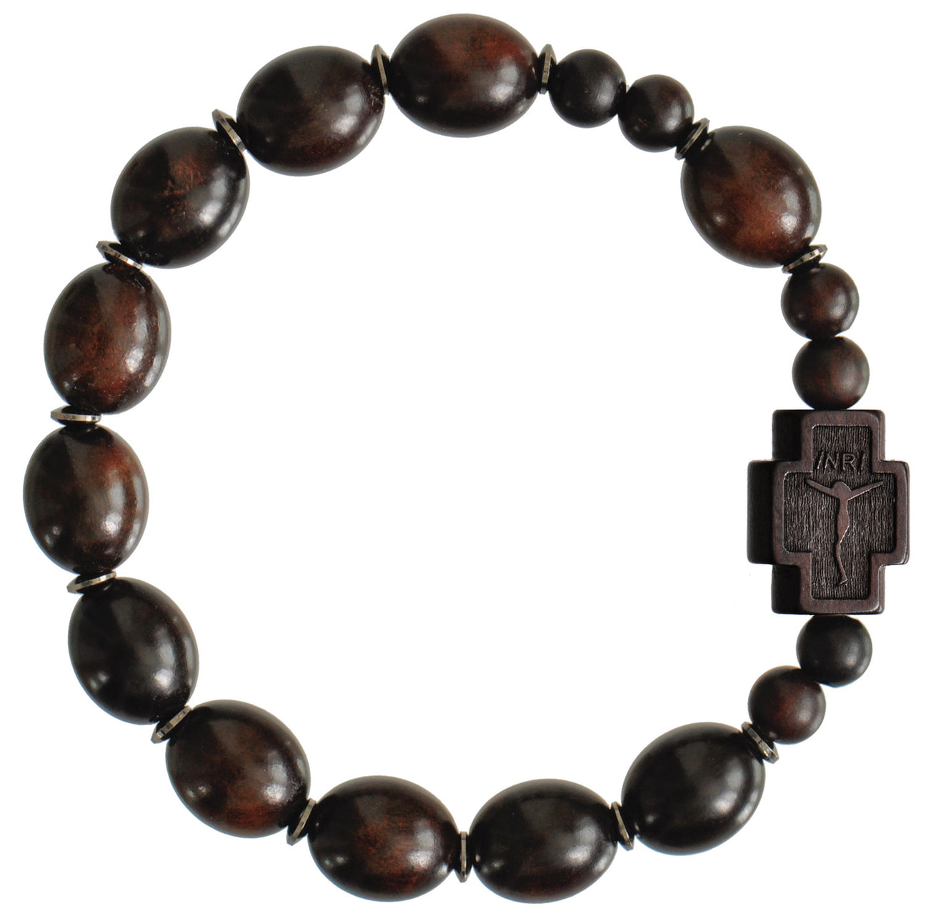 $3.99Unit price /UnavailableStretch Rosary Bracelet with Alternating Cross and 5mm Light Brow Wood Beads 8" for Men