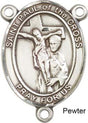 This oval shaped rosary centerpiece measures 3/4"" H x 1/2"" W and is available in either pewter or sterling silver.