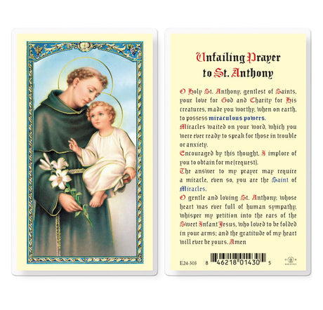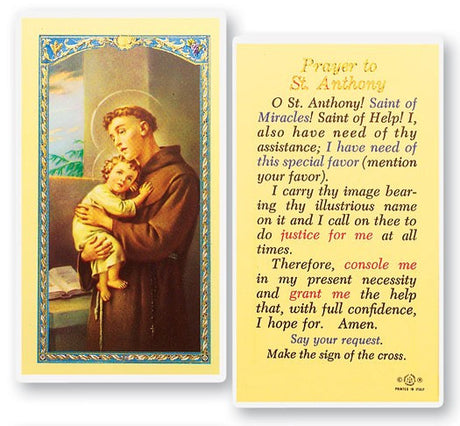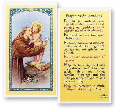 Prayer To St. Anthony Holy Card Laminated Prayer Card