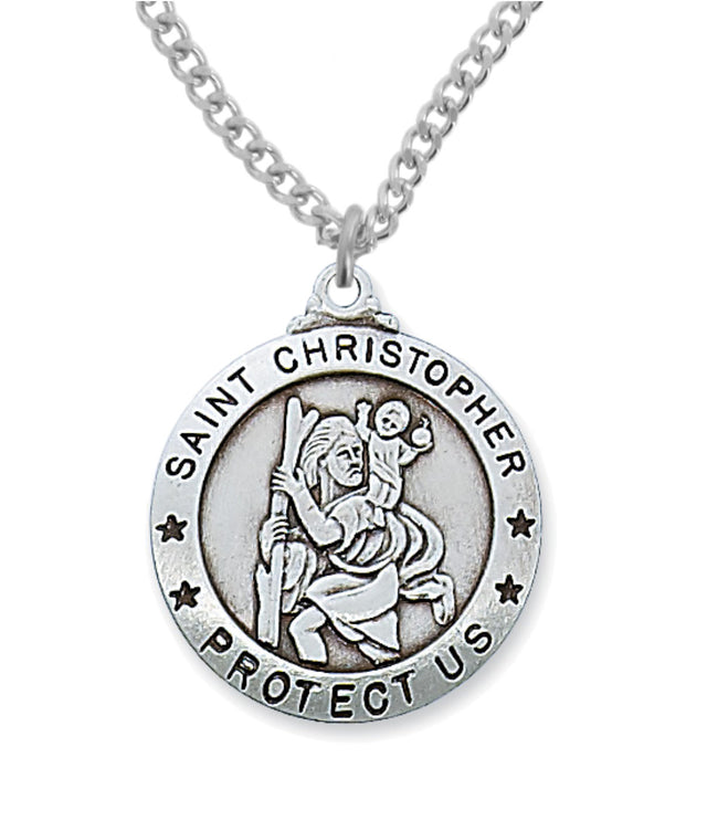 Round Wide Border St. Christopher Medal Sterling Silver for Men