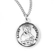 As the patron saint of those with mental disorders, this necklace displays the saint's image in the center. She is holding a book and a lily.