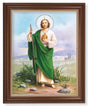 An artwork print featuring the traditional image of Saint Jude. This quality print is mounted onto textured artboard for a canvas like look and feel. Choose from two frame options: Classic Dark Walnut or Gold-leaf Finish. Overall dimension with print and frame is 13.5 inches by 16.5 inches.