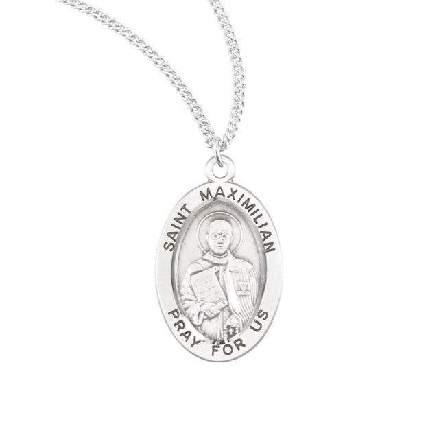 St. Maximillian Kolbe Oval Medal for Women - Sterling Silver / 7/8" x 1/2" is backordered and will ship as soon as it is back in stock.