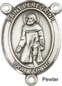 St. Peregrine Laziosi is the patron saint of cancer and running sores. This oval shaped rosary centerpiece measures 3/4" H x 1/2" W and is available in either pewter or sterling silver.