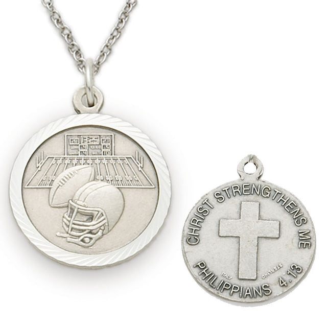Football Sports Medal 3/4 inch with Chain - Silver / 3/4" Diameter is backordered and will ship as soon as it is back in stock.