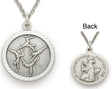 This Gymnastics pendant features gymnasts on the uneven bars, the vault, the beam and the floor. The backside has an image of St. Christopher. Ideal for a girl or woman.