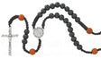 This popular rosary is ideal for the athlete who loves Basketball and faith! The rosary is made with a corded link for a sturdy construction. The Our Father beads are in the shape of a Basketball and the Hail Mary beads are 9mm black wood beads. There is a silver tone Saint Sebastian round medallion centerpiece and a large angle-edge slimline crucifix.