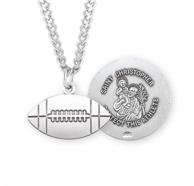 St. Christopher Football Sterling Silver Medal - Sterling Silver / 1" x 13/16" / 24" Surgical Stainless Steel Heavy Curb Chain Endless is backordered and will ship as soon as it is back in stock.