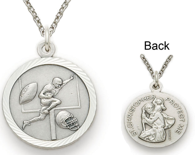 St. Christopher Football Sports Sterling Silver Medal with Chain