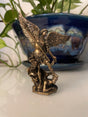 St. Michael, the heavenly defender against evil, is captured mid-battle with the dragon, sword drawn and wings raised. The bronze-tone finish gives the piece an antique look, while the compact size makes it ideal for personal spaces where prayer and protection are desired.