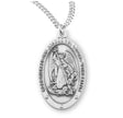 Beautifully detailed image of St. Michael is found on this oval shaped pendant. On the raised outer border are the words Holy Michael the Archangel Defend Us in Battle.