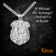 St. Michael Medal with Shield Shape - Sterling Silver / 1 1/4" x 7/8" / 24" Surgical Stainless Steel Heavy Curb Endless Chain (no clasp) is backordered and will ship as soon as it is back in stock.