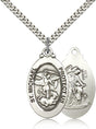 Oval Double-sided St. Michael Guardian Medal - Sterling Silver / 24" Light Rhodium Heavy Curb Chain with clasp (2.9mm) is backordered and will ship as soon as it is back in stock.