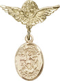 St. Michael the Archangel Charm and Angel with Smaller Wings Badge Pin - 14K Solid Gold / 1" x 3/4" is backordered and will ship as soon as it is back in stock.