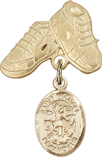 St. Michael the Archangel Charm and Baby Boots Pin - 14K Solid Gold / 1" x 5/8" is backordered and will ship as soon as it is back in stock.