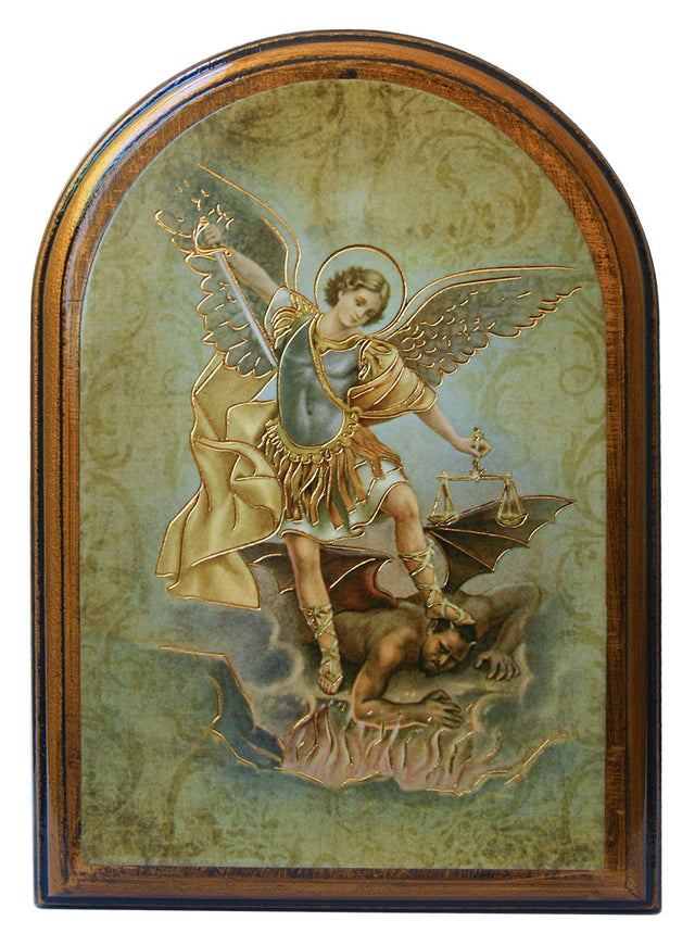 St. Michael 3.75x5.25 Arched Wood Plaque