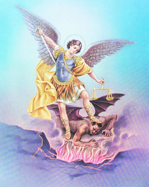 This is a beautiful Fratelli Bonella poster of St. Michael. This poster is made of heavy glossy paper and is gold embossed with bright and vibrant colors.