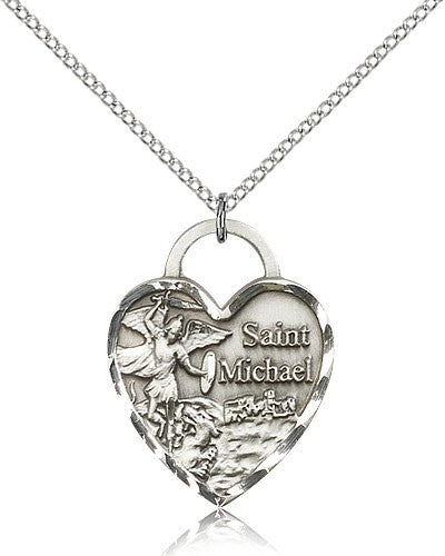This lovely St. Michael The Archangel Medal is a heart shaped work of art. It features a detailed image with a shiny hand etched border. A beautiful gift for any special lady.