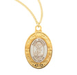 St. Michael Oval Sterling Silver Medal for Women - Gold Plated / 15/16" x 5/8" / 18" Brass Gold Plated Medium Curb Chain is backordered and will ship as soon as it is back in stock.