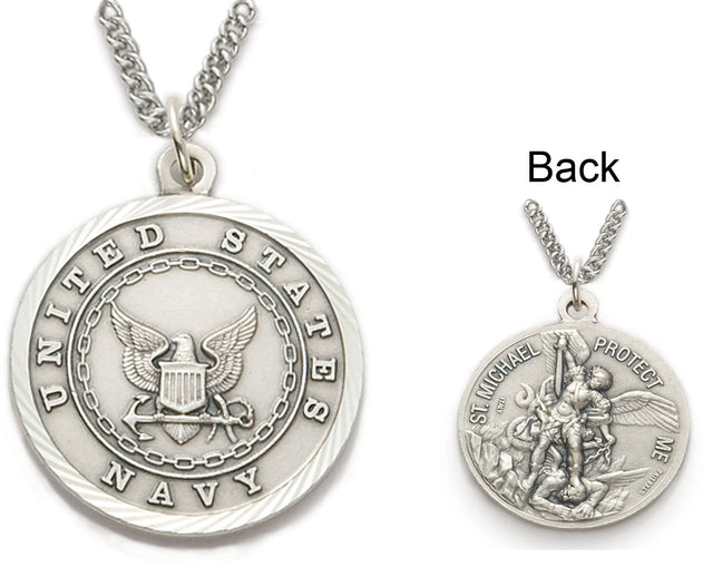 St. Michael U.S. Navy Sterling Silver Medal with Chain for Women