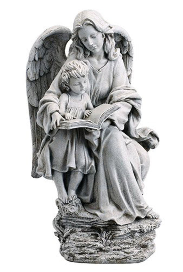 Our angels are here to guide us and protect us! Let this beautiful guardian angel garden statue remind you of just that. We find an angel lovingly spending time with a child as they read and learn together.