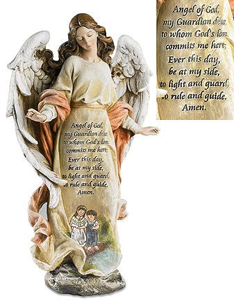 Verse reads, 'Angel of God, my Guardian dear, to whom God's love commits me here; Ever this day, be at my side, to light and guard, to rule and guide. Amen.'